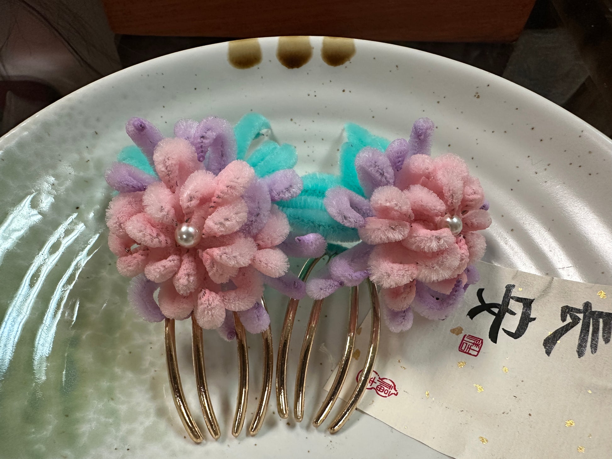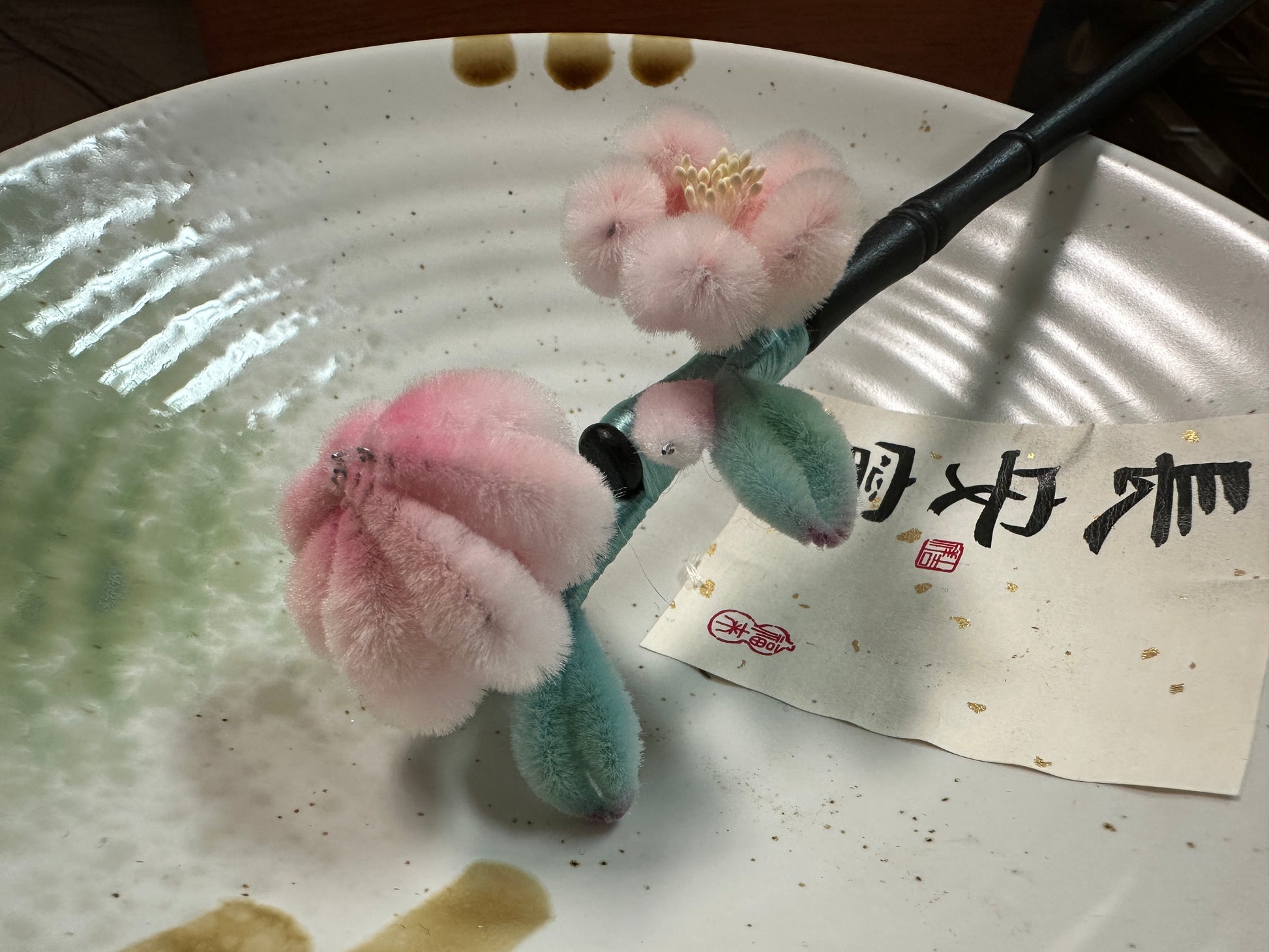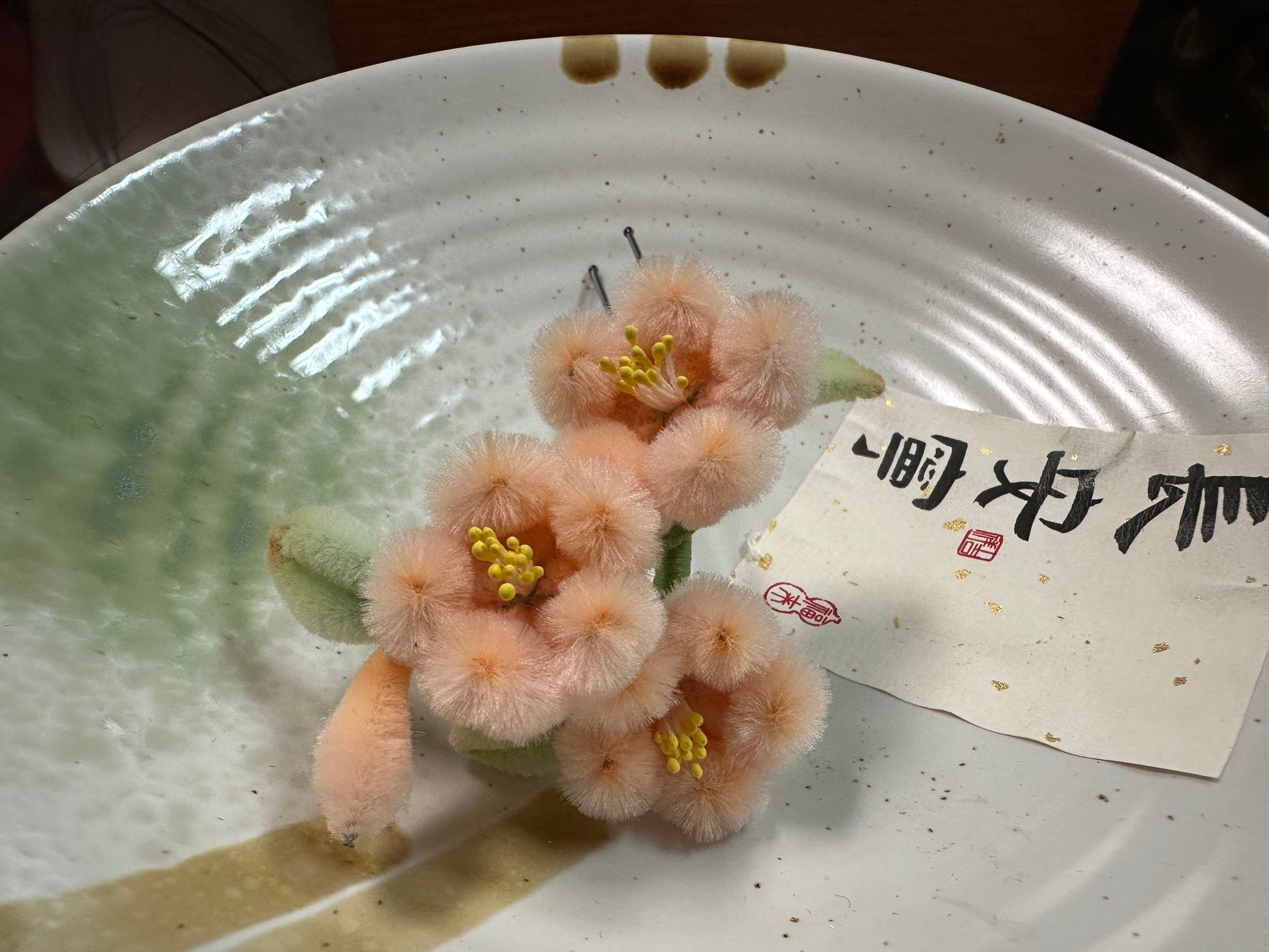 这是一款仿绒花工艺的饰品,采用高品质绒条精心制作而成。每一朵花型都由手工修剪创作,呈现出自然灵动的美感,细腻而富有层次感。仿绒花不仅保留了传统绒花的经典韵味,同时融入了现代设计元素,既轻盈又耐用,适合搭配汉服、礼服或日常穿搭,为整体造型增添一抹优雅与精致。无论是作为自用饰品还是赠送亲友,这款仿绒花都能传递出独特的品味与温暖心意。