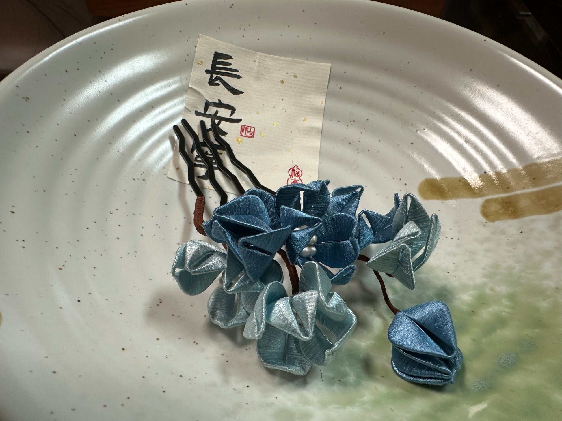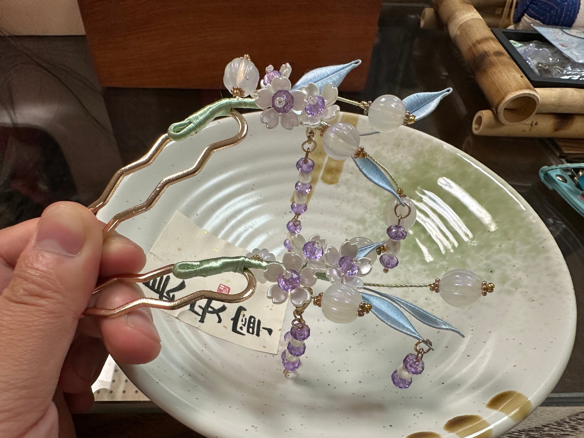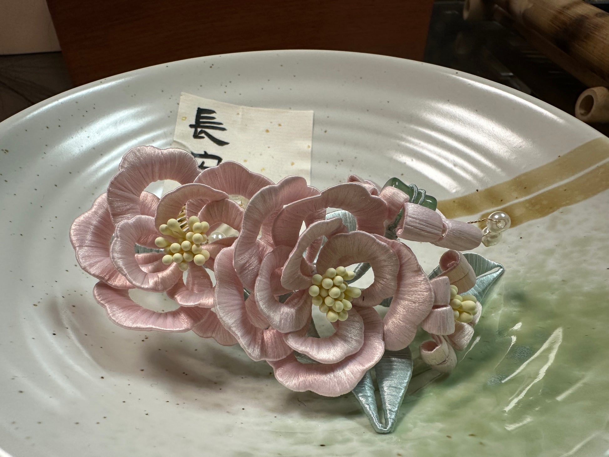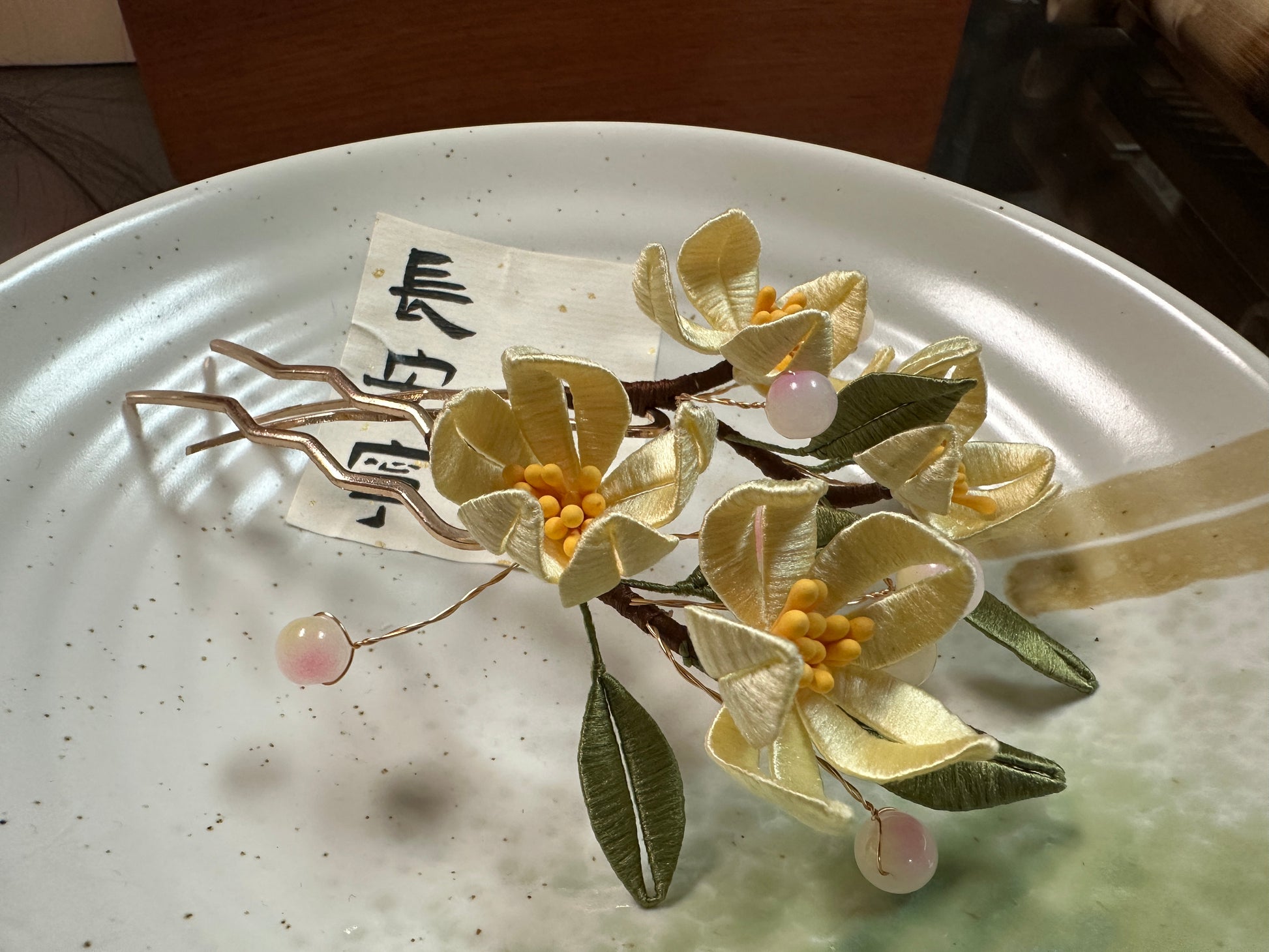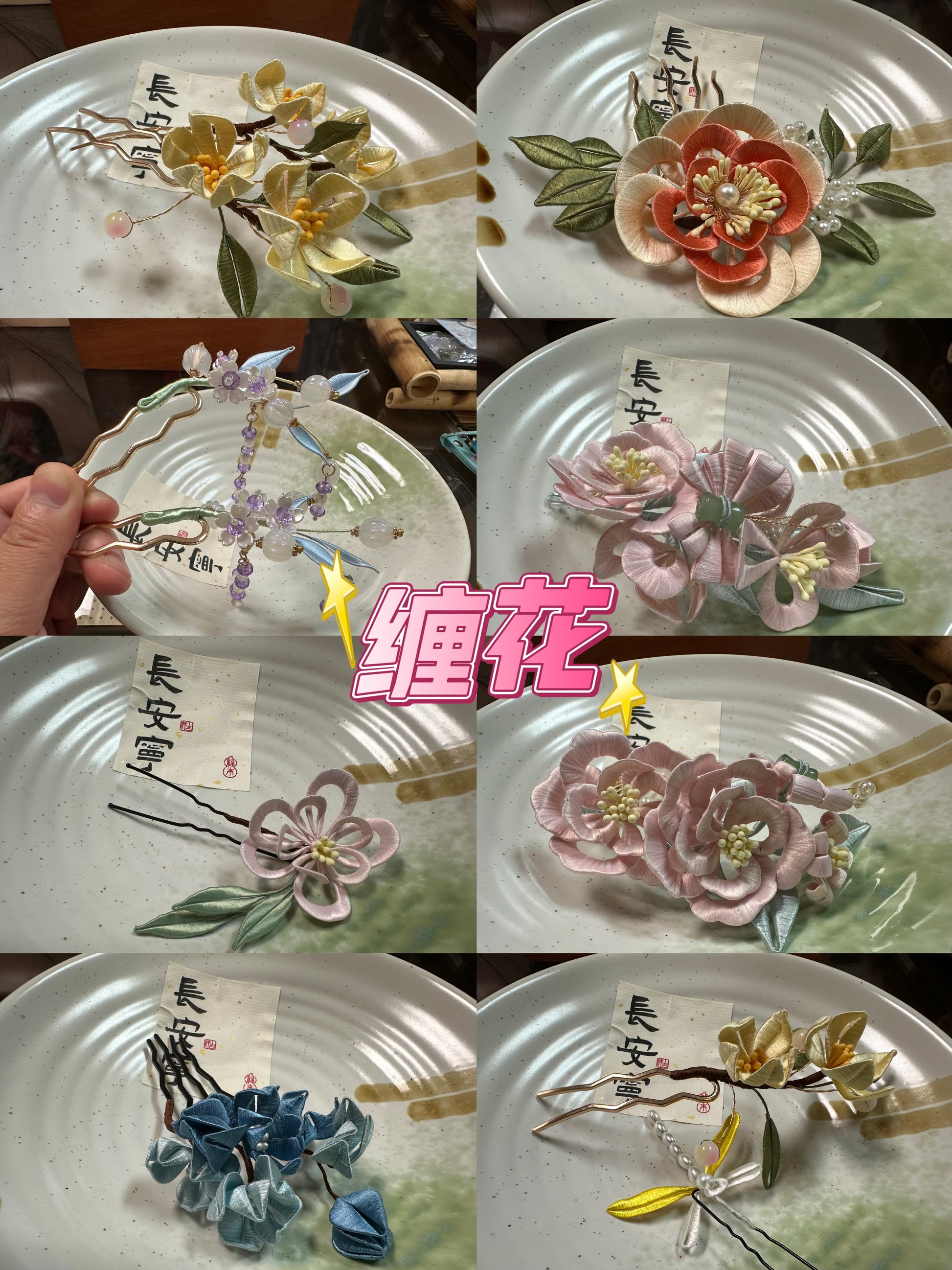 This is a handcrafted hair accessory made using the traditional "circular flower" technique. Circular flower crafting is an ancient and intricate art form that involves skillfully wrapping fine threads to create flowers and patterns with rich layers and vivid shapes. Each piece requires meticulous design and hours of craftsmanship, showcasing the beauty of artistry and dedication. Inspired by elegant floral motifs, this accessory features a refined design, perfect for pairing with Hanfu, formal attire, or everyday outfits, adding a touch of timeless classical charm. As a completely handcrafted piece, each accessory is truly one of a kind, with only one available. It is an excellent choice for a thoughtful gift or personal use.